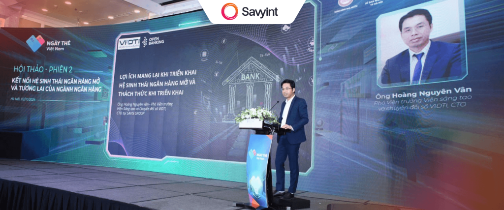 On the morning of October 2nd, Mr. Hoang Nguyen Van, Vice Director of the Institute of Innovation and Digital Transformation (VIDTI) and Chairman of the Board of SAVYINT, delivered a presentation on the topic “The Benefits and Challenges of Implementing the Open Banking Ecosystem” at the symposium.